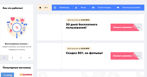 Если код все равно не работает, вероятно, срок его действия истек, исчерпан ваш личный лимит использования или он был аннулирован магазином. В таком случае выберите другой купон из нашего каталога.