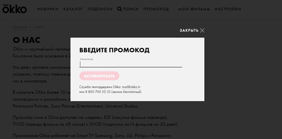 Адрес электронной почты: mail@okko.tv.